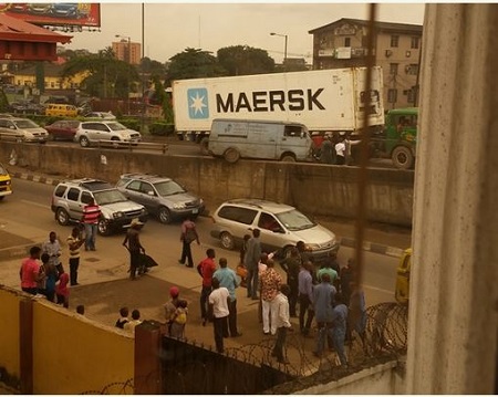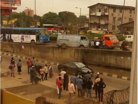 Bus Nearly Falls Off Ojuelegba Bridge in Lagos (Photos)